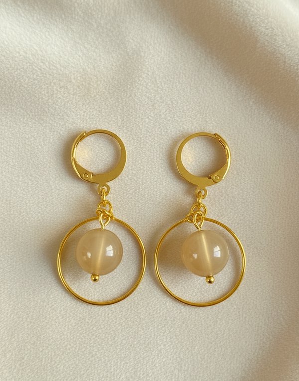 Embrace harmony and stability with these handmade Light Orange Agate earrings, featuring polished 10mm natural gemstones set in gold plated stainless steel hooks. Agate, with its soft golden tones and subtle banding, is cherished as a stone of balance, grounding, and emotional strength, bringing gentle energy that restores confidence and inner peace.