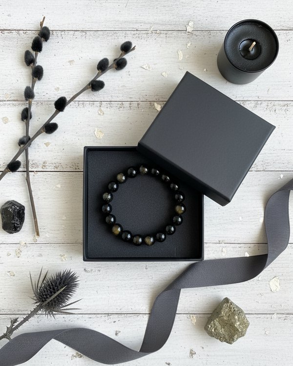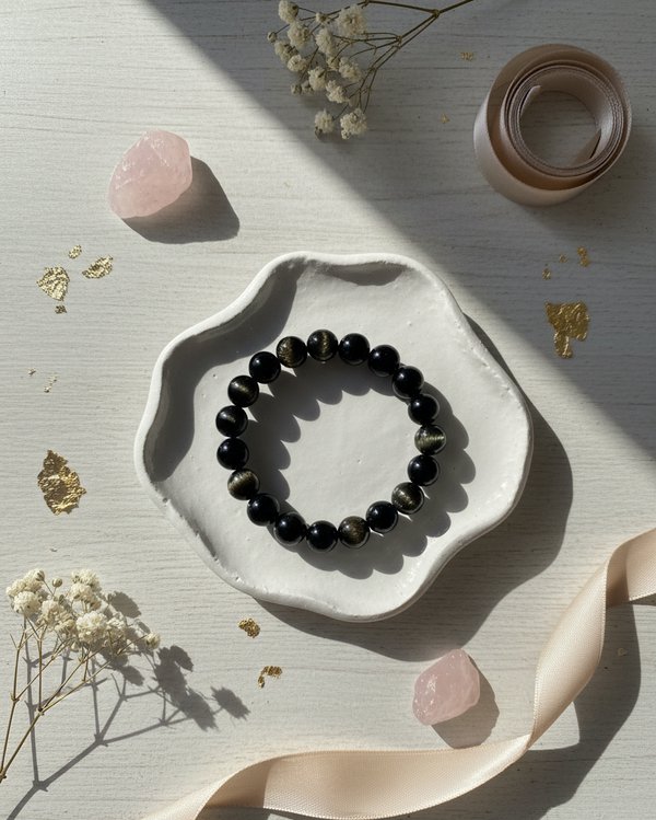 Golden Black Obsidian is a deeply protective stone, known to deflect negative energy and reveal hidden truths. It encourages courage and self-mastery while supporting emotional balance and spiritual transformation. Many wear it as a talisman of protection and empowerment.