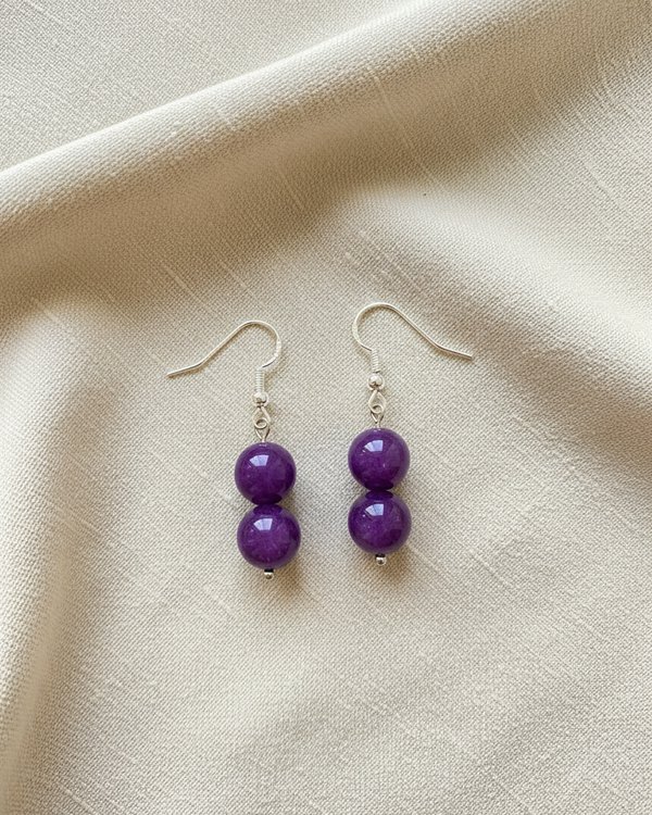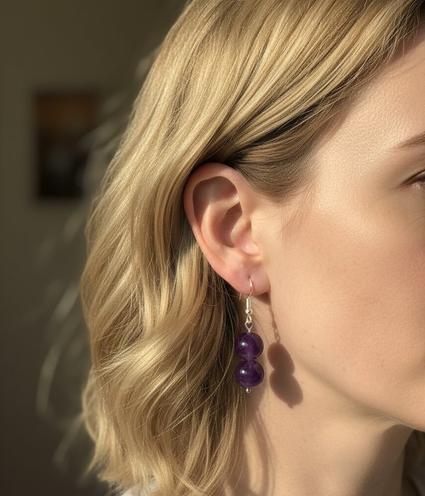 Discover balance and tranquility with these Handmade Natural Amethyst Earrings, each featuring two polished 10mm round beads. Celebrated for centuries as a stone of peace and protection, Amethyst’s deep purple tones radiate calm and spiritual strength.