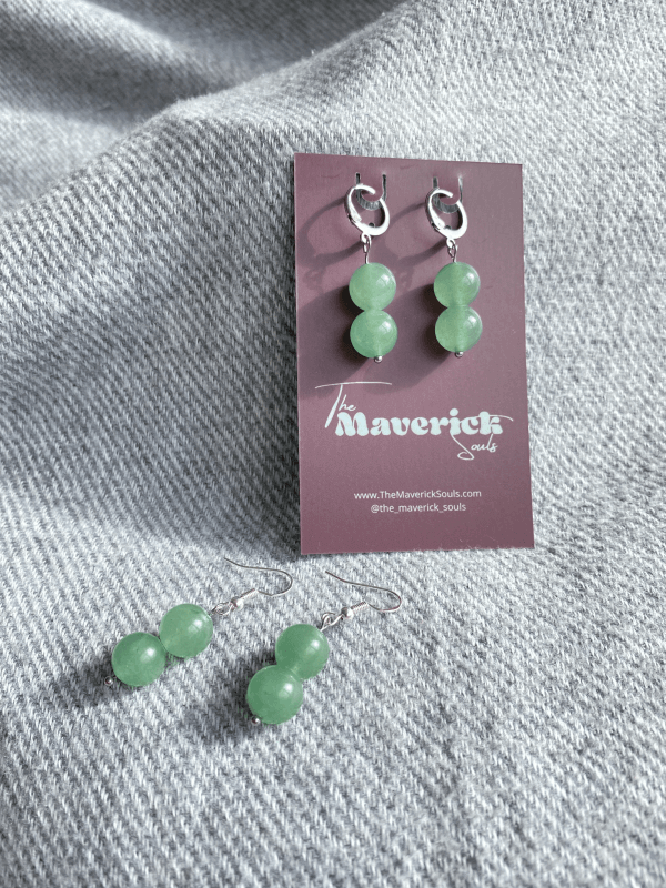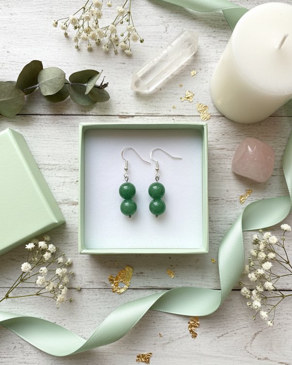 handmade earrings; gemstone earrings; natural stone earrings; Green Aventurine jewellery; crystal earrings; stainless steel earrings; 925 sterling silver earrings; hypoallergenic earrings; dangle earrings; handmade gift for her; boho earrings; healing stone earrings; green gemstone earrings; artisan jewellery; spiritual jewellery; unique gift idea; gift for mom; gift for friend; birthday gift; custom message jewellery; gift wrapped earrings; lucky stone earrings; heart chakra jewellery; prosperity crystal earrings; gift wrapped earrings; custom message jewellery
